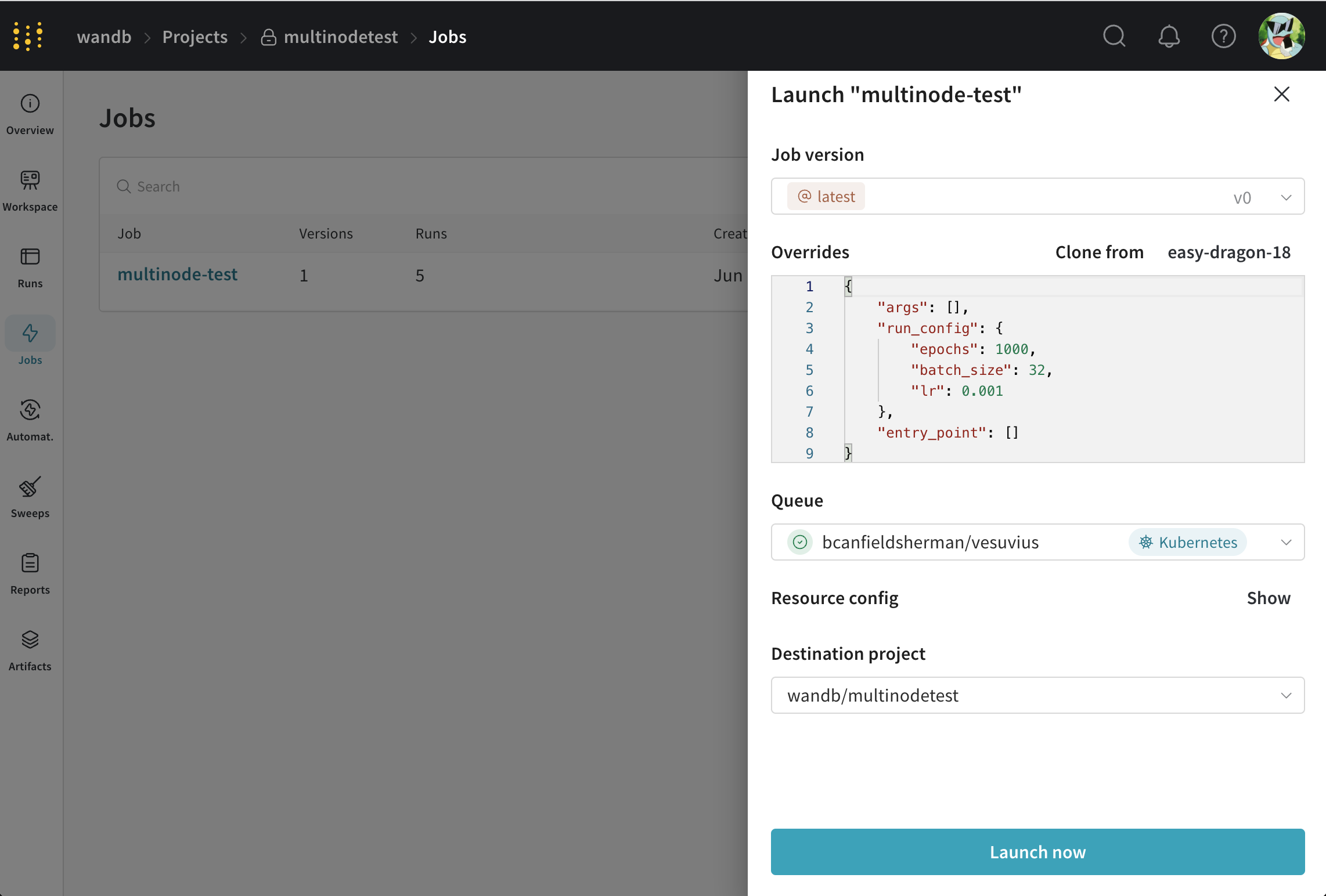 In this tutorial, you will learn how to use W&B Launch to run multinode jobs on Kubernetes. The steps we will follow are: